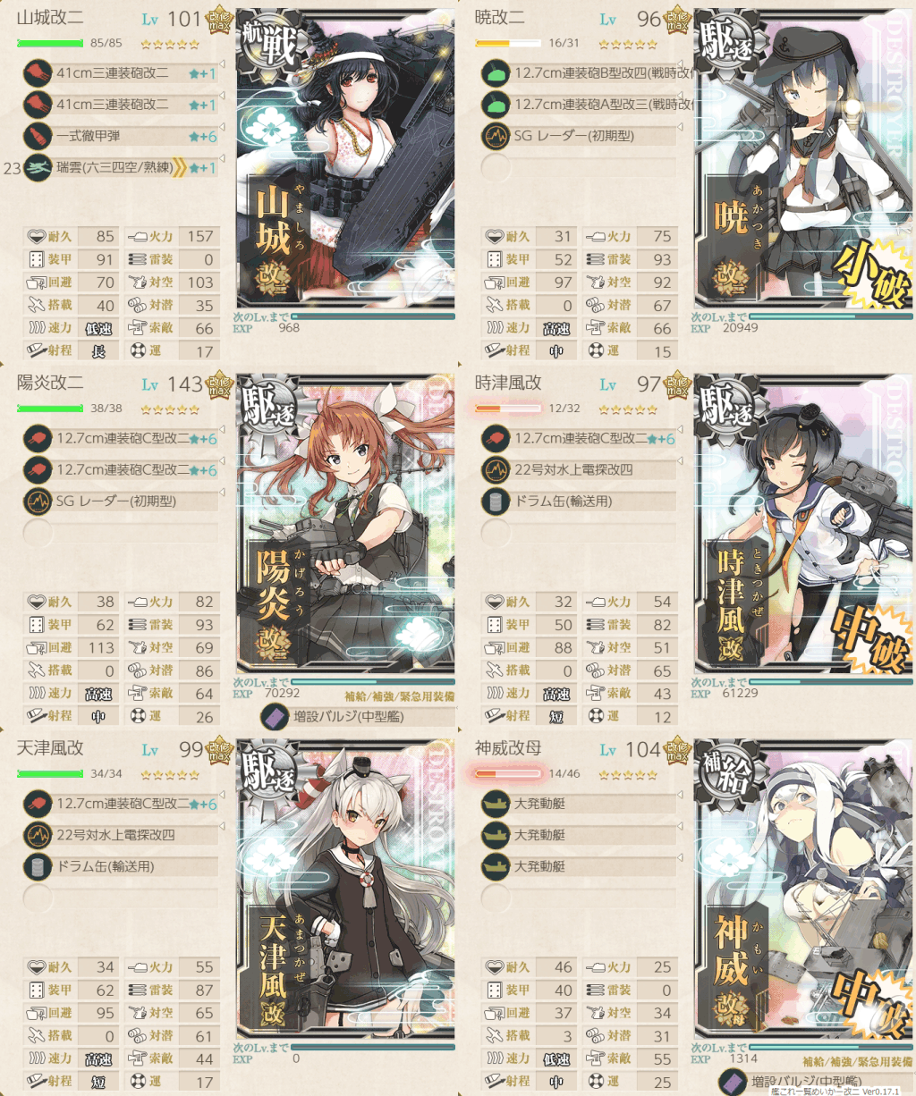| 第1艦隊 | 航空戦艦 補給艦 駆逐艦4(推奨) 護衛空母 補給艦 駆逐艦4 |