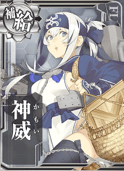 神威はアイテム「洋上補給」を装備できる補給艦だ。洋上補給を装備した神威のいる艦隊は、出撃海域のボスマスへ突入する前に洋上補給を消費して、燃料弾薬を補給できる。