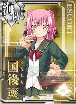 占守型海防艦二番艦、国後よ。北方の護りは任せてよね。え、地味だろって。何それ!あの出撃の前に単冠湾の哨戒とか、大事な役割も務めたんだから。大湊を起点に、千島列島や宗谷海峡、津軽海峡など大切なところを守ったの。ねえ、聞いてる?最後は大切な大切なこと、頑張ったし。頑張ったよね、あたし!