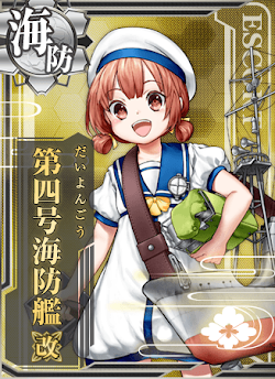 第四号海防艦改はスロット数が2つしかなく、ステータスも全体的に他の海防艦と比べて劣っている。燃費が特別良いわけでもなく、性能面でかなりのハンデを背負っているといえる。