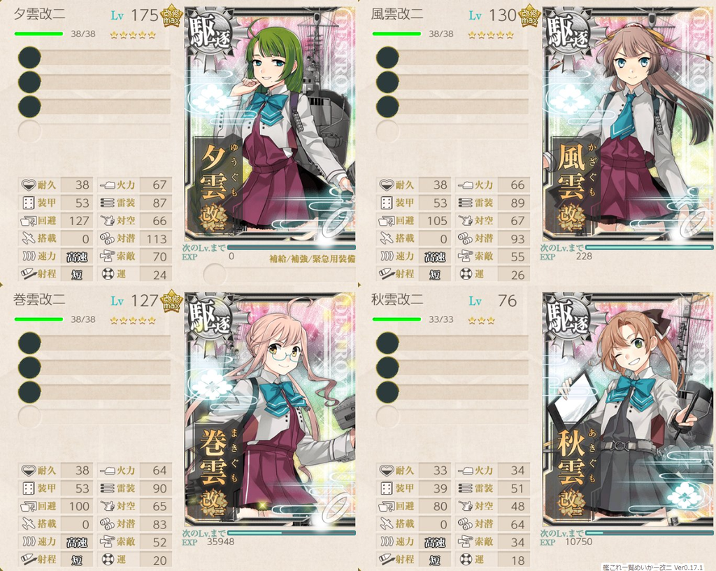 | 「夕雲改二」「巻雲改二」「風雲改二」「秋雲改二」を編成 |