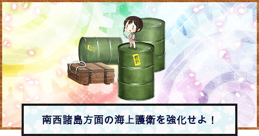 艦これのイヤーリー任務、南西諸島方面の海上護衛を強化せよ!の攻略情報を掲載。おすすめの編成や報酬、マップ情報等を掲載しているので、南西諸島方面の海上護衛を強化せよ!攻略の参考にどうぞ。