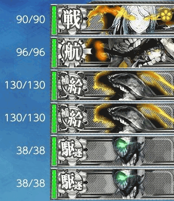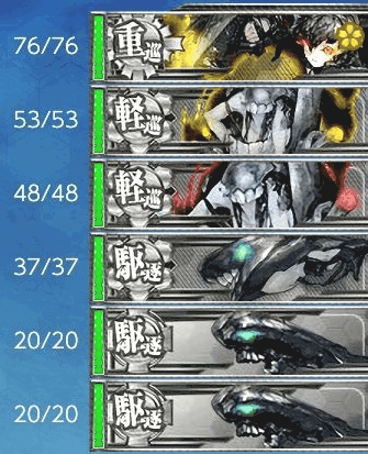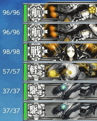 最短ルートを通るには、高速統一が必要と思われる。低速水母を編成したところ、Gマスでルートが逸れた。日進を所持していない方は、水母ちとちよを採用するか雷巡を編成しよう。