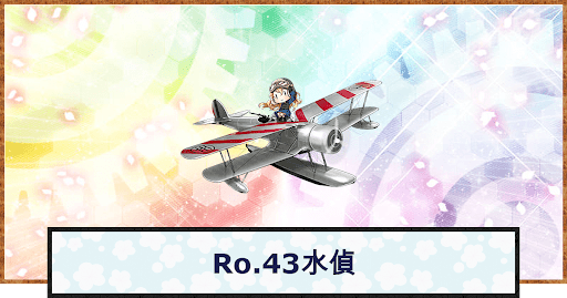 艦これ(艦隊これくしょん)のRo.43水偵の性能や開発レシピ/改修情報を掲載。初期装備で持参する艦娘や、改修素材として使う装備も紹介しているので、Ro.43水偵を使う際の参考にどうぞ。