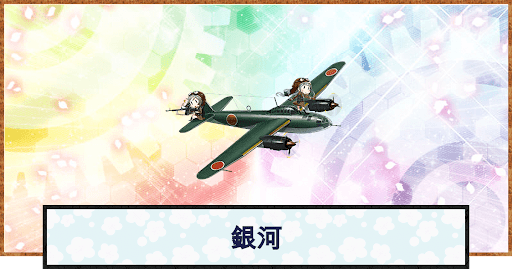 銀河は雷装、爆装それぞれの数値が高い陸上攻撃機だ。戦闘行動半径も9と長いので、陸上攻撃機の中では非常に使いやすく優れた機体といえる。弱点は対空射撃回避を持たないこと程度なので、一般的な運用をするなら銀河をメインに使おう。