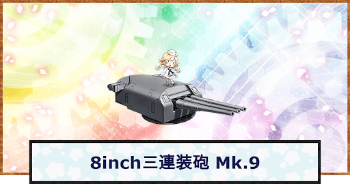 艦これ(艦隊これくしょん)の8inch三連装砲 Mk.9の性能や改修情報を掲載。初期装備で持参する艦娘や、改修素材として使う装備も紹介しているので、8inch三連装砲 Mk.9を使う際の参考にどうぞ。
