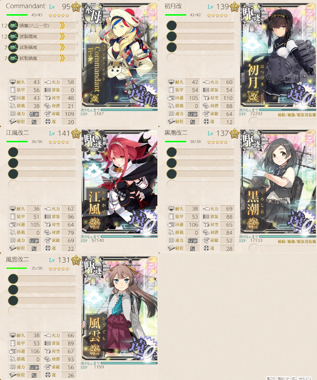 | 水上機母艦×1 軽巡洋艦×1 駆逐艦×2 自由枠×2 |