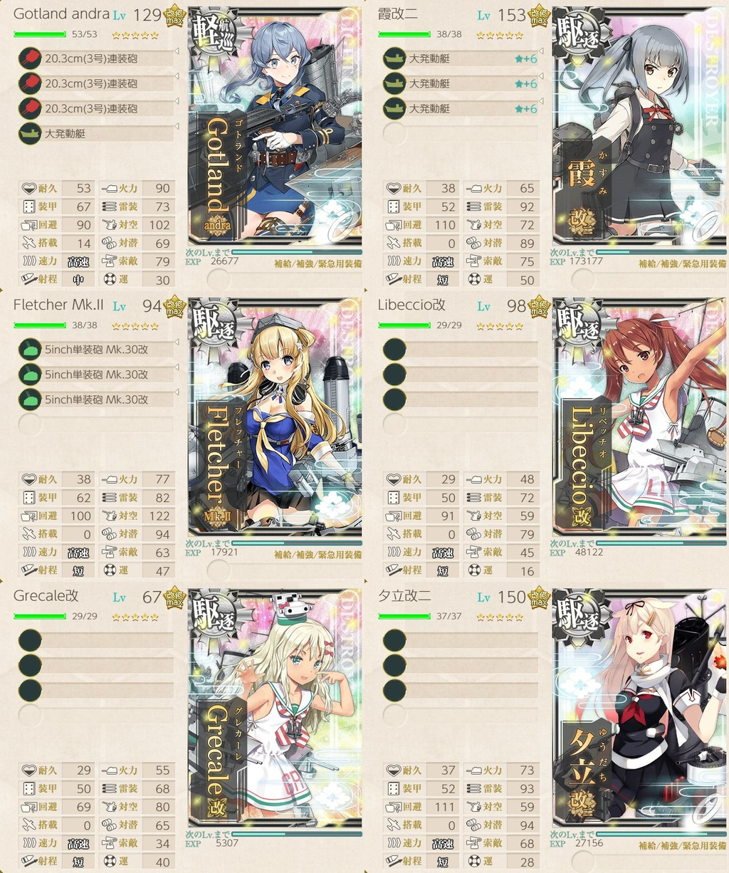 | その他の条件 | レベルの合計が150以上 対潜値の合計200以上 対空値の合計200以上 索敵値の合計140以上 |