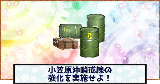 | 「小笠原沖哨戒線」「小笠原沖戦闘哨戒」はマンスリー遠征。月に1回しか成功できないので、任務受注を忘れないように注意しよう。 |