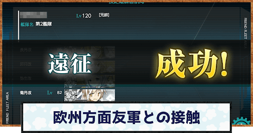 欧州方面友軍との接触は月に1回だけ成功させることができる「マンスリー遠征」に分類される。大成功でクリアすると改修資材を確定で入手できるので、艦隊を強化するためにも毎月必ずクリアしよう。
