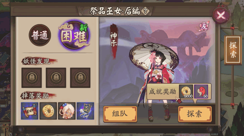 ダンジョンでの任意の式神妖怪に挑戦し、勝利すると報酬を獲得できる。