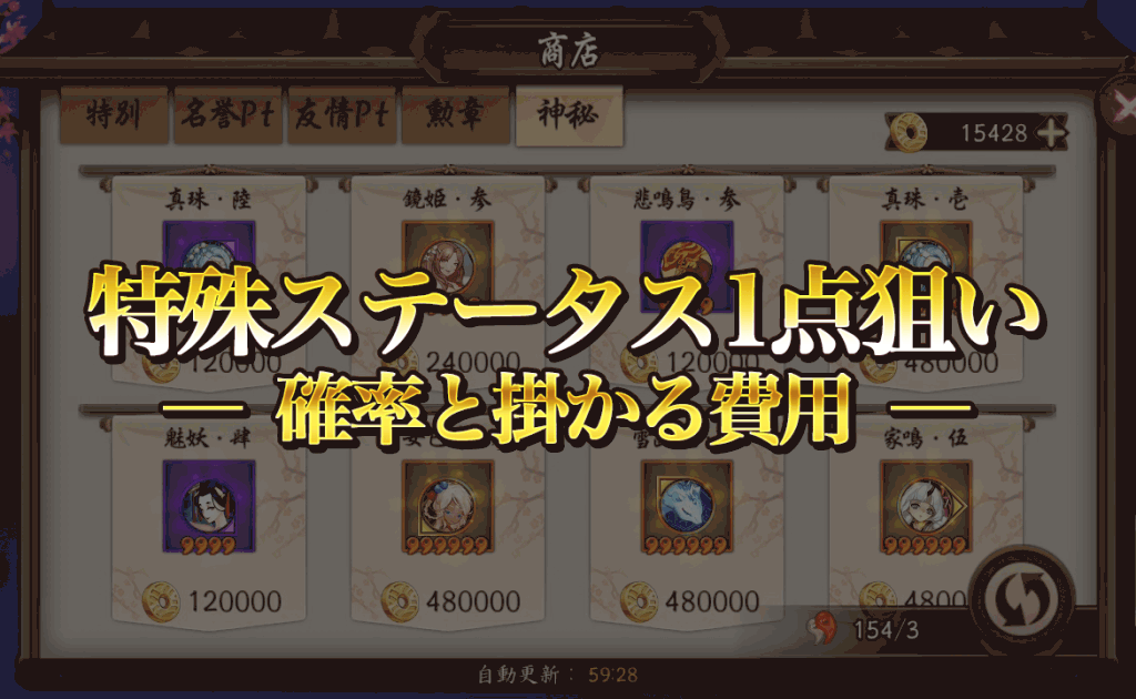 【陰陽師】御魂ガチャ特殊ステータス1点狙いの確率と掛かる費用|商店マラソン