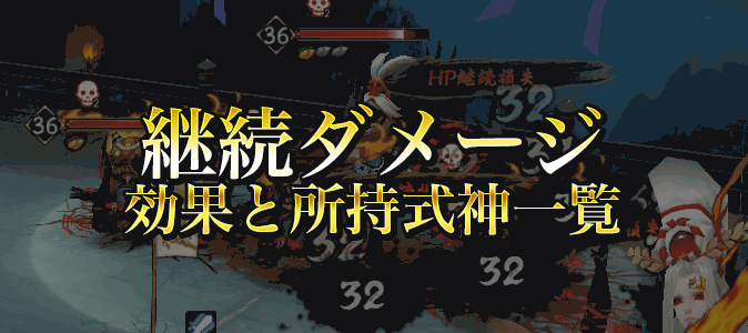 継続ダメージの効果と所持式神一覧の効果と所持式神一覧についてまとめてあるページです。