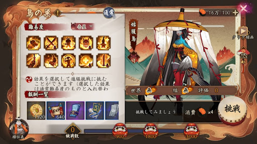 | 評価を上げるには、先に鬼王の難易度を上げてから、効果を選択し直して挑戦しよう。 |