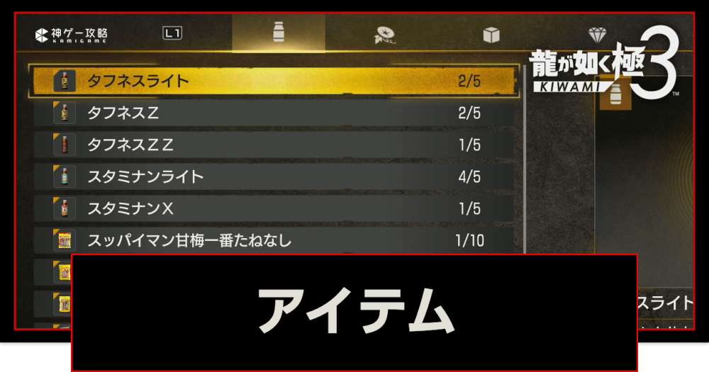 龍が如く極3(龍が如く3外伝 Dark Ties)の「アイテム一覧」を紹介。龍が如く極3のアイテムの入手方法と効果についても掲載しています。