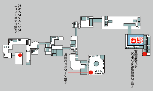 西郷のいる神室町西屋上へは、劇場前にある赤ビルから向かうと西郷が近くにいる。