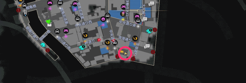 | 1 | 風俗街・中央通り南東のゴミ捨て場で逆さまになった男を目撃し、選択肢「助ける」を選ぶ。 |