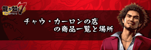 『龍が如く7』のショップ、裏武器屋(チャウ・カーロンの店)で購入できる商品を一覧で紹介!チャウ・カーロンの店の場所もマップ画像で掲載しているため、龍が如く7を攻略する際の攻略の参考にどうぞ。