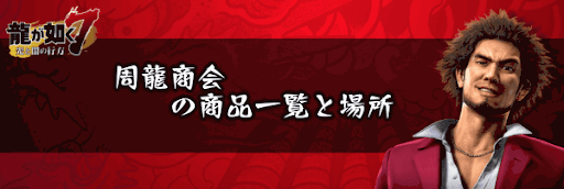 『龍が如く7』のショップ「周龍商会」で購入できる商品を一覧で紹介!周龍商会の場所もマップ画像で掲載しているため、龍が如く7を攻略する際の攻略の参考にどうぞ。
