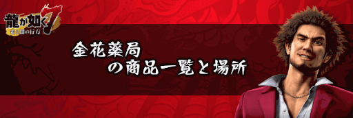 『龍が如く7』のショップ「金花薬局」で購入できる商品を一覧で紹介!金花薬局の場所もマップ画像で掲載しているため、龍が如く7を攻略する際の攻略の参考にどうぞ。