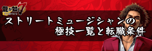 『龍が如く7』のジョブ・ストリートミュージシャンの極技一覧と転職条件、評価と最強武器も掲載!ジョブの特徴や転職可能キャラなどの基本情報、キャラごとの転職条件も掲載いるため、龍が如く7を攻略する際の参考にどうぞ。