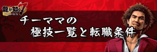 『龍が如く7』のジョブ「チーママ」極技一覧と転職条件、評価とおすすめ極技も掲載!ジョブの特徴や転職可能キャラなどの基本情報、キャラごとの転職条件も掲載しているため、龍が如く7を攻略する際の参考にどうぞ。