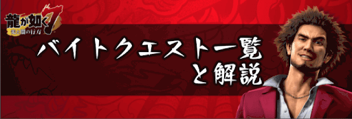 『龍が如く7』におけるバイトクエスト一覧と報酬一覧を掲載!「紙をください」や「たまごの調達依頼」といったバイトクエストを一覧で紹介しているほか、各ヒーローランクと貰える報酬を一覧にして掲載しているため、龍が如く7を攻略する際の参考にどうぞ。