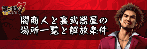『龍が如く7』闇商人と裏武器屋(隠しショップ)の場所一覧と解放条件をご紹介!闇商人・ふみえ・万華鏡・裏武器屋(チャウ・カーロンの店)の場所と解放条件を掲載しているため、龍が如く7攻略の参考にどうぞ。
