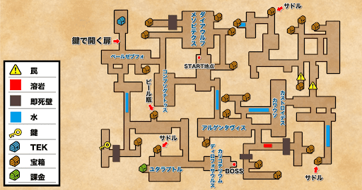 ベールゼブフォ部屋をクリアしたら、一旦左下へ進んで鍵を入手しよう。鍵を手に入れたらベールゼブフォ部屋まで戻り、上にある扉を開ければTEK設計図を回収できる。