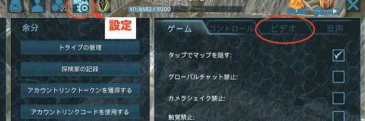 インベントリから、設定を押してビデオ設定を開く。
