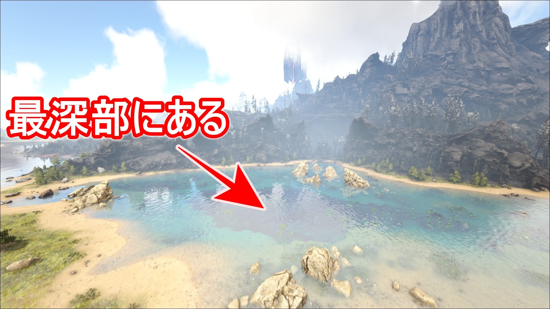 中層にある採取スポット。浅瀬に密集しているため、ネームレス対策さえできていれば大量に採取できる。 |