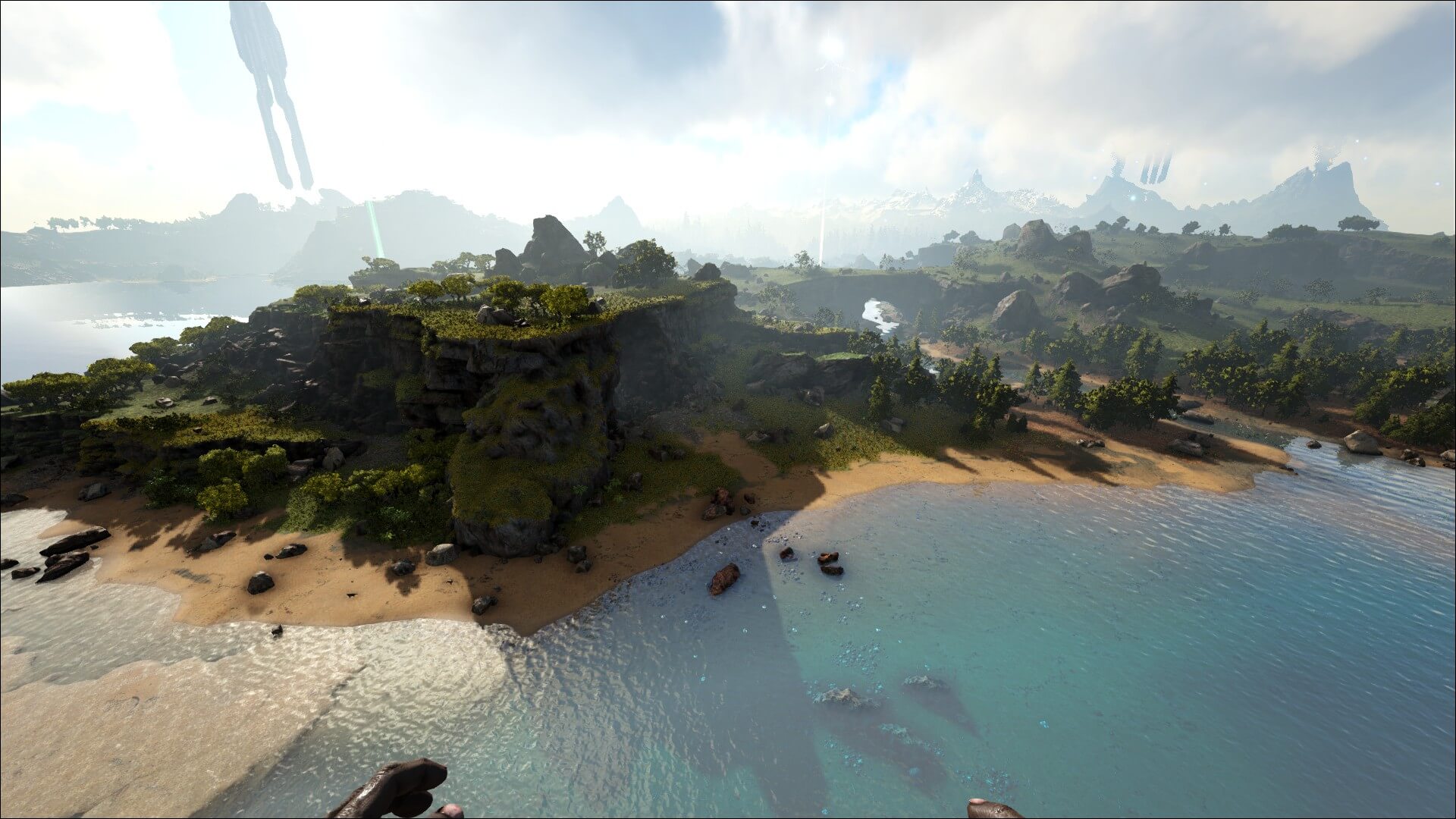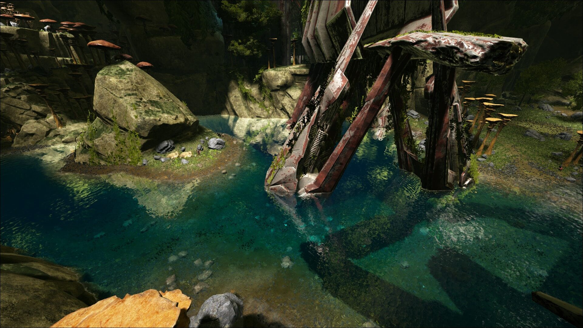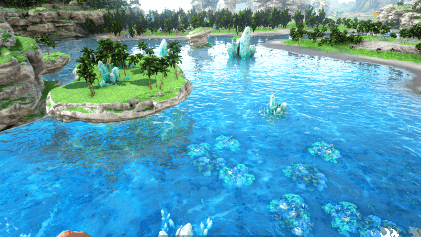 海中には「メガロドン」や「モササウルス」といった危険な生物も存在する。護衛の恐竜を連れて歩くか、水中で使用可能なクロスボウなどの武器を用意しておこう。