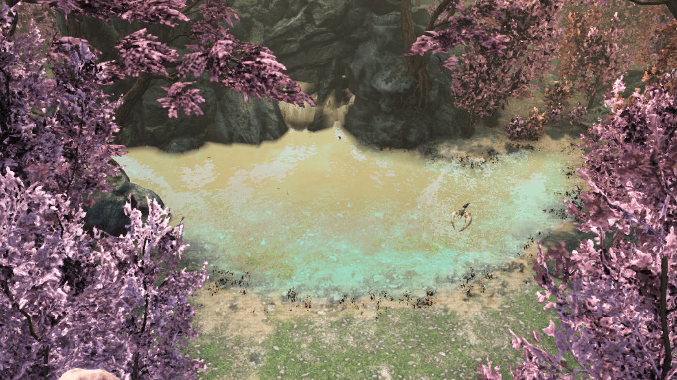 上層にある採取スポット。少しだけ深いエリアにある。プラントZの種もついでに回収しておこう。 |