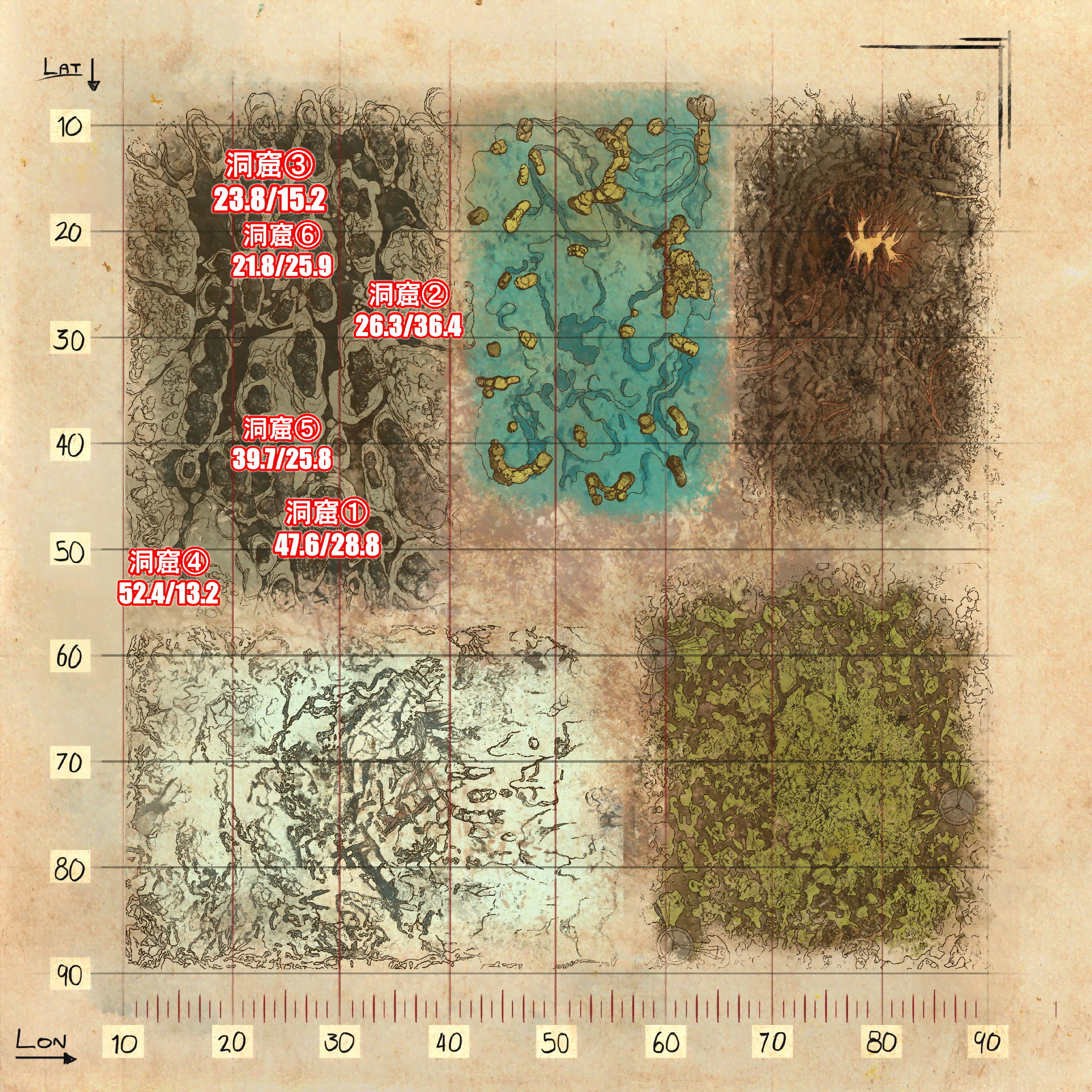 | 洞窟 | 座標 | 最寄りテレポート |