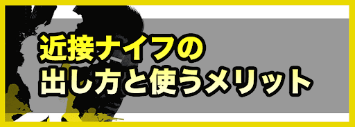 ナイフの使用には、弾が必要ない。そのため、弾切れの心配をせずに使用できるのがメリットだ。銃撃戦で弾が切れた場合などは、ナイフを持って裏から特攻しよう。