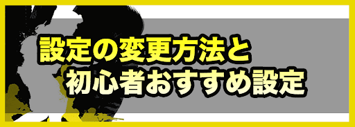 初心者の方は、操作に関する設定はデフォルト設定でプレイしよう。デフォルト設定は、癖のない標準的な設定となっている。ゲームになれるまでは、デフォルト設定がおすすめだ。
