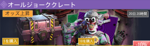オールジョーククレートは、新エピックソルジャー「ガンゾー・タクティクラウン」や多くのエピック武器などが入手可能な期間限定ガチャ。1回120CP、10連だと1080CPで引けるため、10連で購入すれば1回分お得だ。
