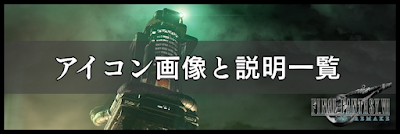 FF7Rのアイコンを一覧で紹介している。アイコンの説明を早見表で見やすく記載しているので参考にどうぞ!