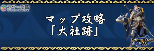 モンハンライズ(MHRise)のマップ「大社跡」について紹介。大社跡の入手アイテムやおすすめ採取ルートに加え、サブキャンプの場所や解放条件などを記載している。モンハンライズ攻略の参考にどうぞ!