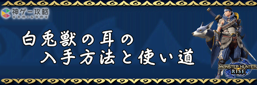 モンハンライズ(MHRise)のアイテム「白兎獣の耳」の入手方法と使い道を掲載。白兎獣の耳を使用する装備や装飾品の一覧も掲載しているので、モンハンライズを攻略する際の参考にどうぞ!