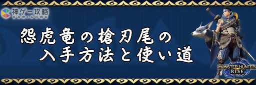 モンハンライズ(MHRise)のアイテム「怨虎竜の槍刃尾」の入手方法と使い道を掲載。怨虎竜の槍刃尾を使用する装備や装飾品の一覧も掲載しているので、モンハンライズを攻略する際の参考にどうぞ!
