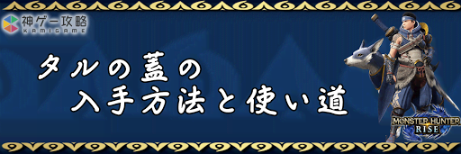 モンハンライズ(MHRise)のアイテム「タルの蓋」の入手方法と使い道を掲載。タルの蓋を使用する装備や装飾品の一覧も掲載しているので、モンハンライズを攻略する際の参考にどうぞ!