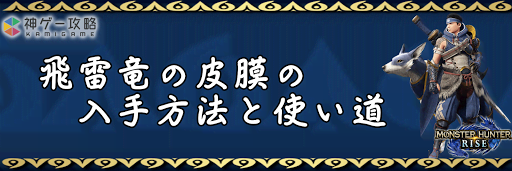 モンハンライズ(MHRise)のアイテム「飛雷竜の皮膜」の入手方法と使い道を掲載。飛雷竜の皮膜を使用する装備や装飾品の一覧も掲載しているので、モンハンライズを攻略する際の参考にどうぞ!
