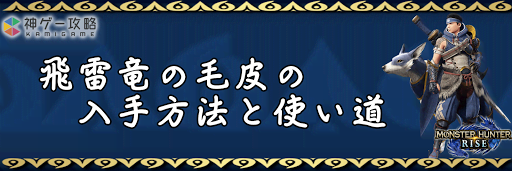 モンハンライズ(MHRise)のアイテム「飛雷竜の毛皮」の入手方法と使い道を掲載。飛雷竜の毛皮を使用する装備や装飾品の一覧も掲載しているので、モンハンライズを攻略する際の参考にどうぞ!