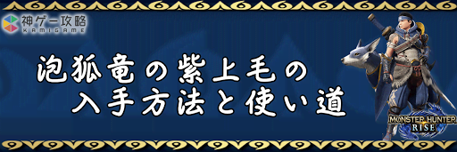 モンハンライズ(MHRise)のアイテム「泡狐竜の紫上毛」の入手方法と使い道を掲載。泡狐竜の紫上毛を使用する装備や装飾品の一覧も掲載しているので、モンハンライズを攻略する際の参考にどうぞ!