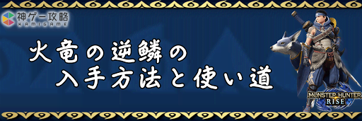 モンハンライズ(MHRise)のアイテム「火竜の逆鱗」の入手方法と使い道を掲載。火竜の逆鱗を使用する装備や装飾品の一覧も掲載しているので、モンハンライズを攻略する際の参考にどうぞ!