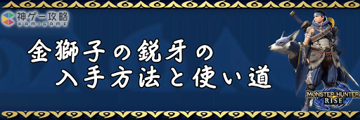 モンハンライズ(MHRise)のアイテム「金獅子の鋭牙」の入手方法と使い道を掲載。金獅子の鋭牙を使用する装備や装飾品の一覧も掲載しているので、モンハンライズを攻略する際の参考にどうぞ!