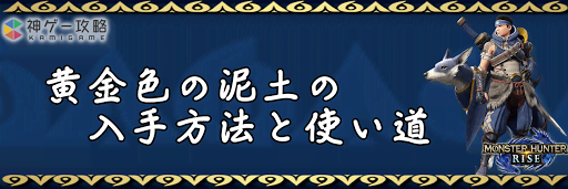 モンハンライズ(MHRise)のアイテム「黄金色の泥土」の入手方法と使い道を掲載。黄金色の泥土を使用する装備や装飾品の一覧も掲載しているので、モンハンライズを攻略する際の参考にどうぞ!