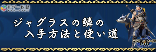 モンハンライズ(MHRise)のアイテム「ジャグラスの鱗」の入手方法と使い道を掲載。ジャグラスの鱗を使用する装備や装飾品の一覧も掲載しているので、モンハンライズを攻略する際の参考にどうぞ!