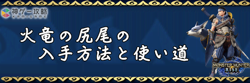 モンハンライズ(MHRise)のアイテム「火竜の尻尾」の入手方法と使い道を掲載。火竜の尻尾を使用する装備や装飾品の一覧も掲載しているので、モンハンライズを攻略する際の参考にどうぞ!
